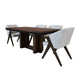 Las sillas Snow Black están tapizadas en un elegante tono negro, que no solo ofrece un contraste atractivo con la madera, sino que también aporta un aire moderno y contemporáneo. La estructura de las sillas, diseñada para brindar máximo confort y estabilidad, complementa perfectamente la mesa de nogal, creando una atmósfera armoniosa y refinada.