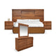 La recámara modelo Braham está elaborada con materiales de alta calidad para garantizar resistencia y estilo. El MDF se utiliza en las partes estructurales, ofreciendo una base sólida y uniforme para un acabado impecable. El pino aporta robustez y calidez a las piezas, mientras que el enchapado en okumé color avellana le da un toque sofisticado y elegante, con una textura suave y un tono cálido que complementa perfectamente el diseño moderno y contemporáneo de la recámara