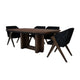 - Sillas: Estructura de MDF y pino enchapado, tapizadas en tela para mayor comodidad y un diseño moderno.