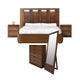 La recámara modelo Boston está fabricada con MDF y pino de alta calidad, garantizando durabilidad y resistencia. El MDF se utiliza para un acabado uniforme y suave, mientras que el pino aporta solidez a la estructura. Ambas maderas están enchapadas en nogal, un acabado cálido y sofisticado que resalta la belleza natural de los materiales, brindando un diseño elegante y atemporal.