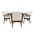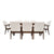 Incluye 8 sillas de madera sólida, tapizadas en tela beige, con capacidad de hasta 120 kg por asiento, ofreciendo comodidad y durabilidad con un diseño moderno.
