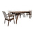 La mesa rectangular está fabricada con tablero de MDF recubierto con chapa natural de madera en acabado nogal, ofreciendo un diseño cálido, moderno y muy resistente, perfecto para 8 personas.