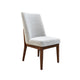 Las sillas están tapizadas en tela color gris de tacto suave y fácil mantenimiento, ofreciendo un equilibrio perfecto entre comodidad y diseño. Su estructura también está fabricada en madera de pino, lo que refuerza la unidad visual del conjunto y garantiza resistencia en el uso diario.